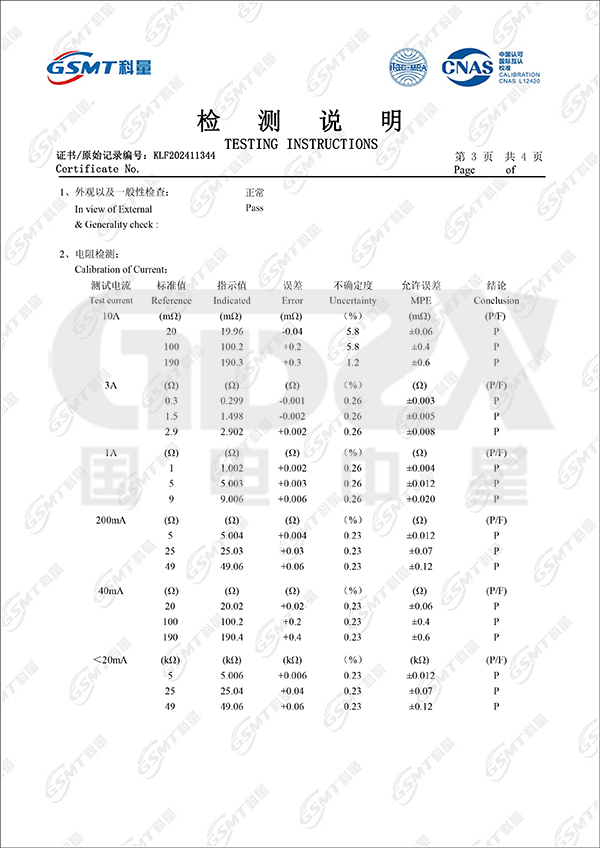 測試電流 | <20mA | 40mA | 200mA | 1A | 3A | 10A |
